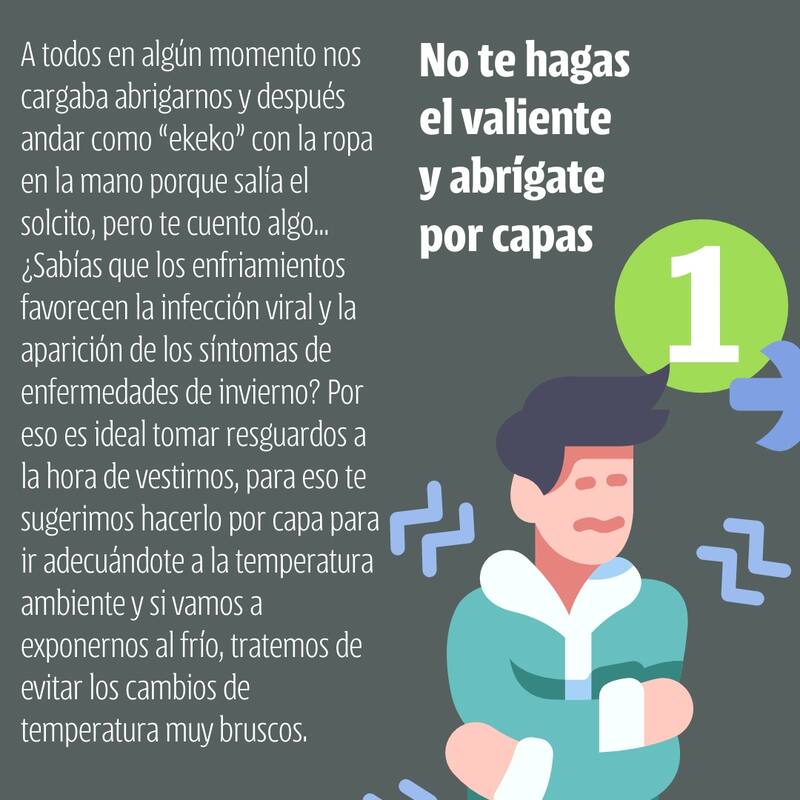 Es verdad, las heladas matinales se dejan sentir con fuerza durante el invierno con temperaturas que rondan los cero grados y a pesar de que salga el solcito, el frío en las tardes, sumado a la poca ventilación son caldo de cultivo para enfermedades como el resfriado común, la gripe o influenza, la bronquitis y la faringitis; cuadros que se hacen frecuentes durante estos meses. Frente a esto, Mutual de Seguridad y La Cuarta comparten algunos consejos para prevenir las enfermedades más comunes de invierno y así, mantener tu sistema inmune y tus defensas a prueba de balas.