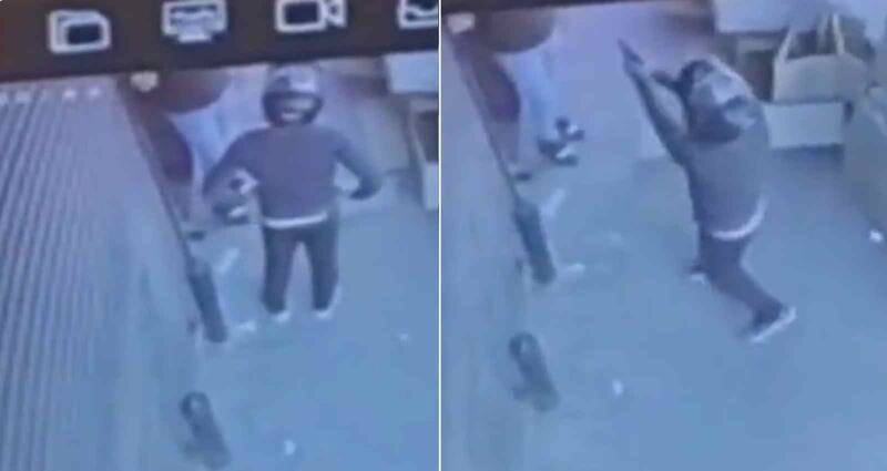 Tal como se puede ver en un registro captado por cámaras de vigilancia, uno de los motociclistas sacó un arma de fuego y disparó a quemarropa contra el trabajador.
