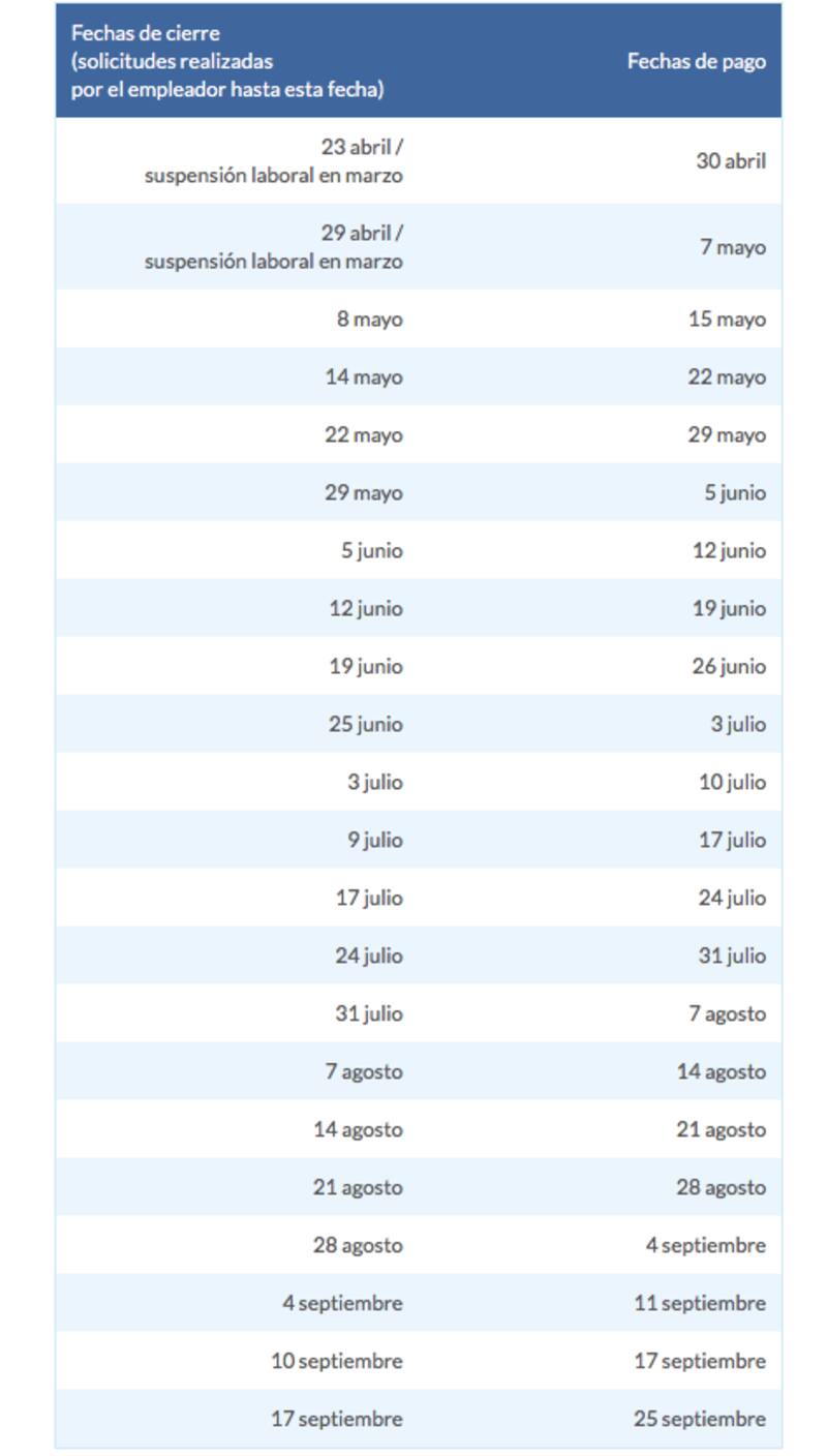 Revisa el calendario de pagos para los trabajadores acogidos a la Ley de Protección al Empleo