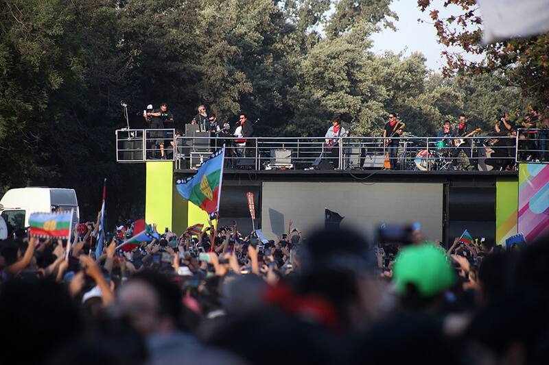 "Estamos chatos de lo que está pasando en este país y decidimos juntarnos. Esto es por la gente que ha perdido sus ojos en esta lucha", filosofó López. La banda se bajó del escenario tras interpretar Miño y se retiraron del lugar en ambulancia.
