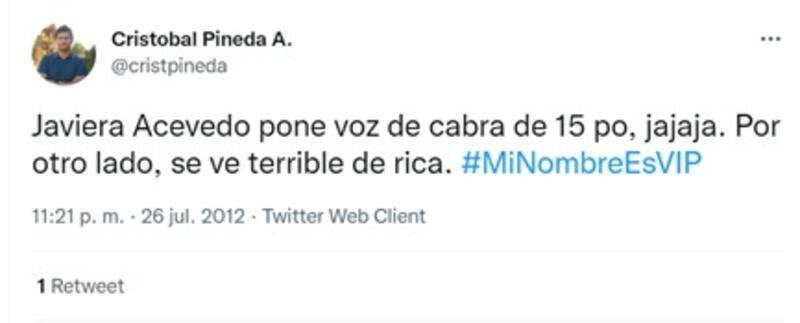 En 2011, cuando tenía 24 años y era estudiante universitario, Cristóbal Pineda publicó en la red social Twitter algunos comentarios sobre la entonces dirigenta estudiantil y otras mujeres. Los tuits fueron borrados y en charla con La Tercera, pide disculpas.