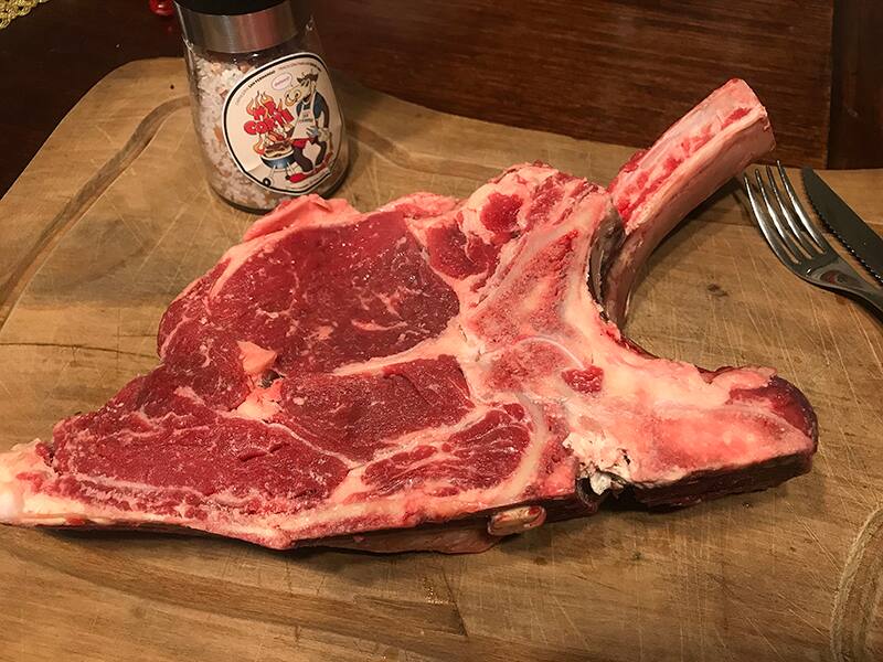 Aunque por ahora el corte estella con que se luce es el tomahawk, el brontosaurio sacado de los Picapiedras que es furor ($11.500 el kilo), la gracia de Mr. Corte es que le llena la guata con productos traídos desde el recuerdo.