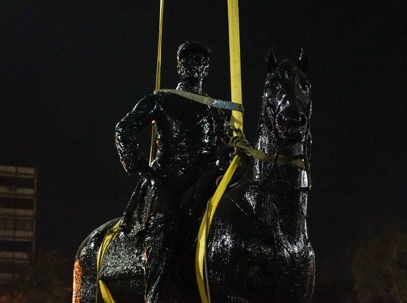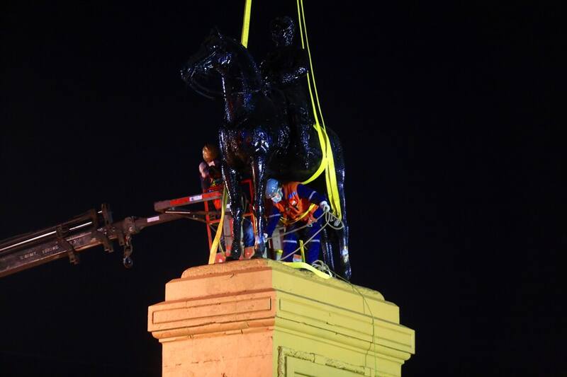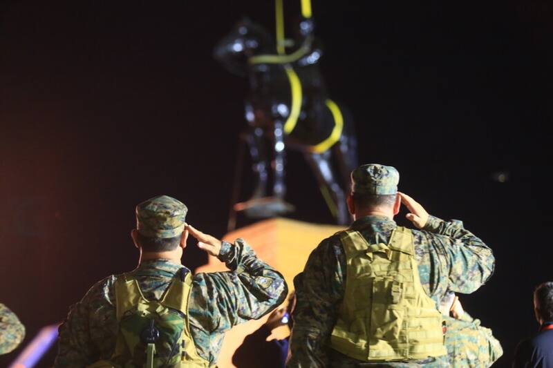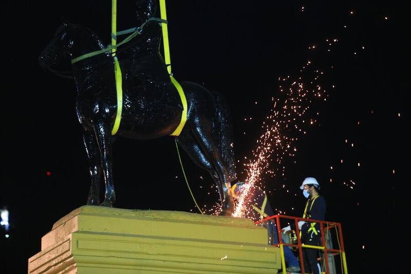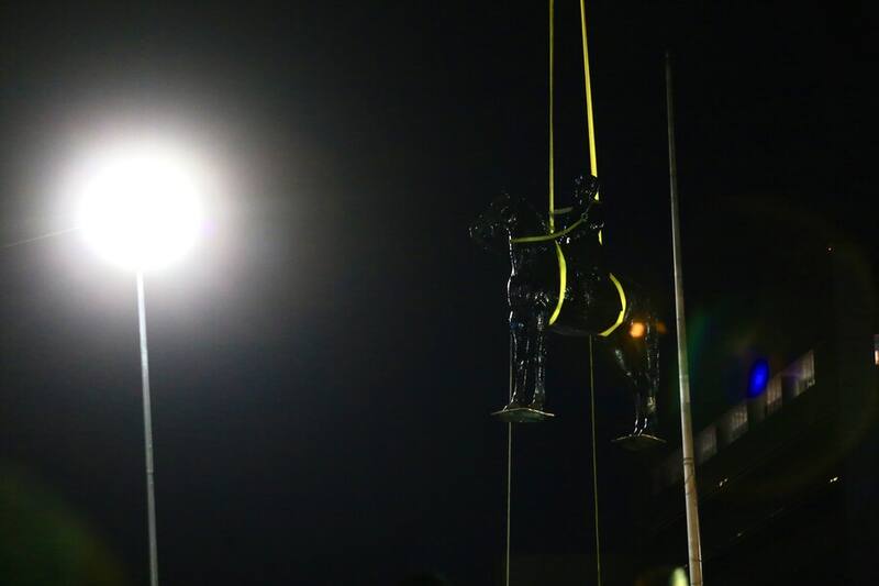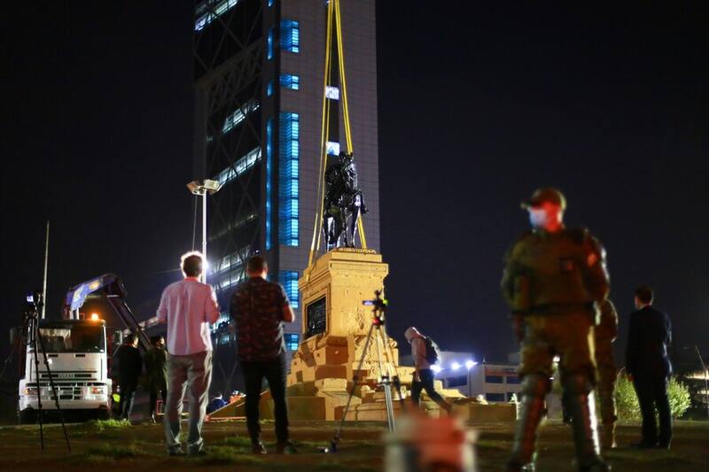 Esta madrugada y rodeado de personal militar se inició el traslado del monumento del General Baquedano para su restauración que durará un año.