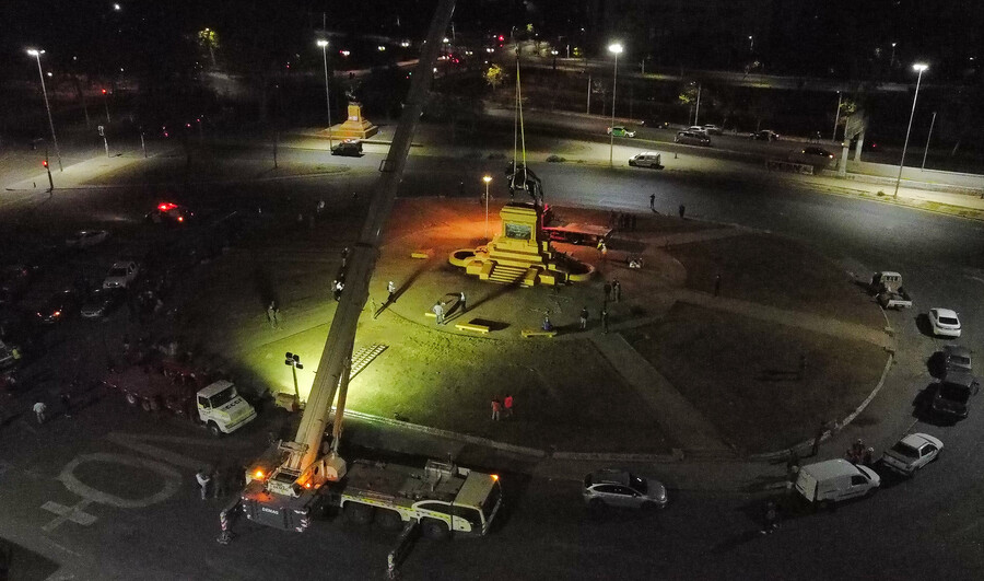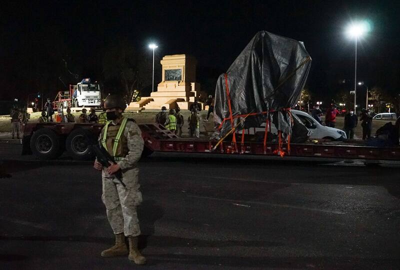 Anoche, comenzó la operación para retirar el monumento al General Baquedano emplazado en la llamada "zona cero" de Santiago.
