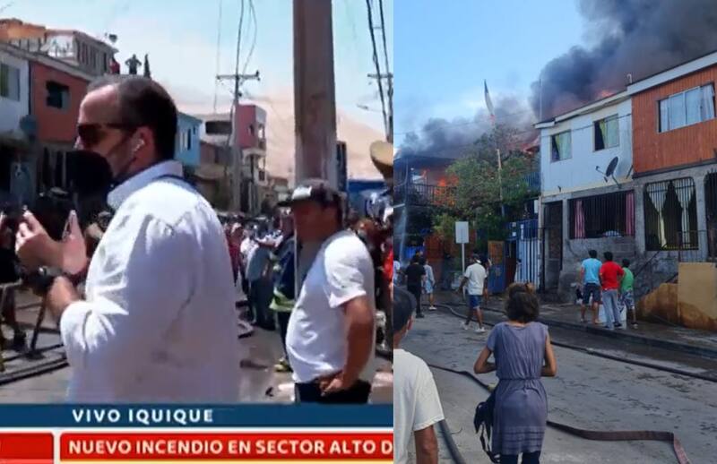 El periodista Juan Carlos Alarcón se encontraba en el lugar de los hechos, mientras las personas del lugar intentan ayudar para apagar las llamas y salvar pertenencias del fuego.