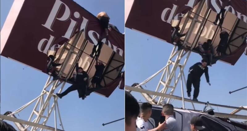 Las imágenes muestran los segundos posteriores a la caída del techo, cuando algunos afectados colgaban de un cartel publicitario.