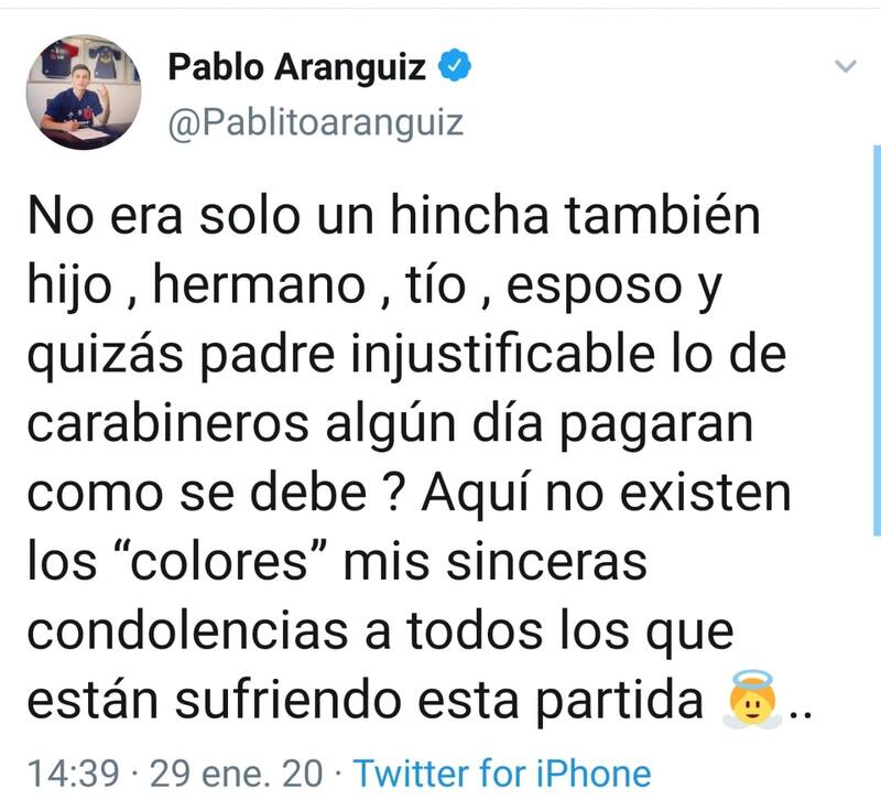 Sin embargo, también hubo algunos de otros equipos que también alzaron la voz. Uno de ellos fue Pablo Aránguiz, jugador de la selección sub 23 y reciente incorporación del clásico rival, Universidad de Chile.