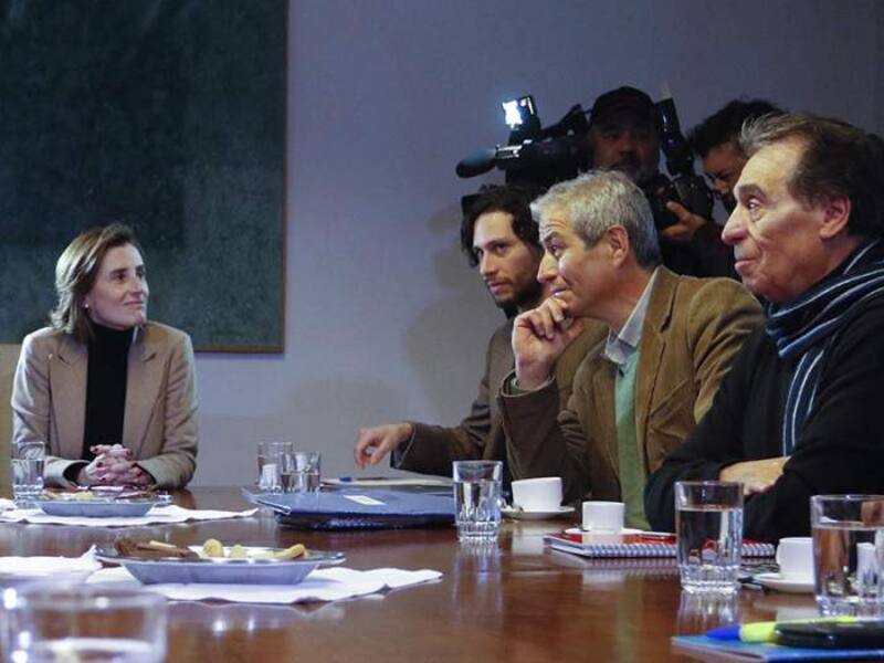La ministra de Educacion, Marcel Cubillos, se reúne con el Colegio de Profesores, encabezado por su presidente Mario Aguilar.