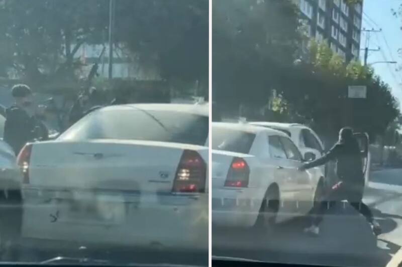 Otro automovilista que estaba a escasa distancia logró grabar el atraco. En las imágenes se observa a al menos tres delincuentes forcejeando con la víctima, que resultó ser un hombre de avanzada edad que conducía un auto marca Chrysler.