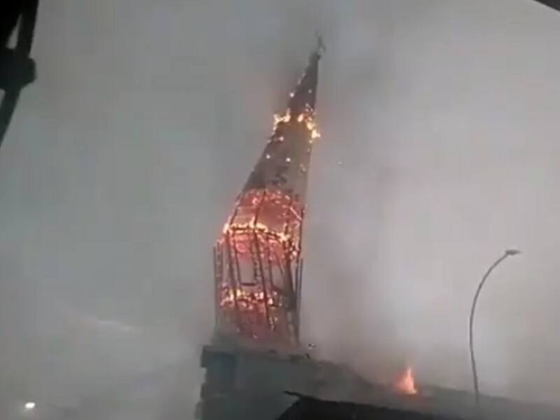 Video muestra el momento exacto cuando cae la cúpula de la iglesia.
