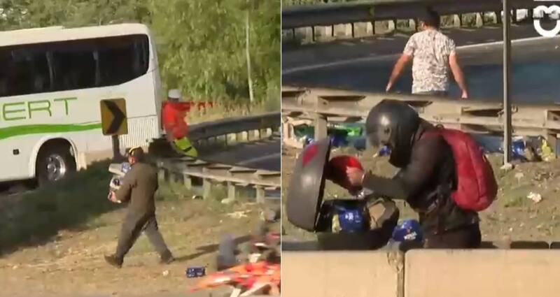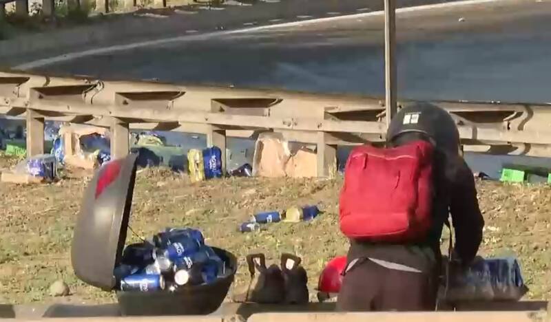 Por Diego Ramírez“Se puso tonto”: graban insólito método de motorista que choreó cervezas tras volcamiento de camión