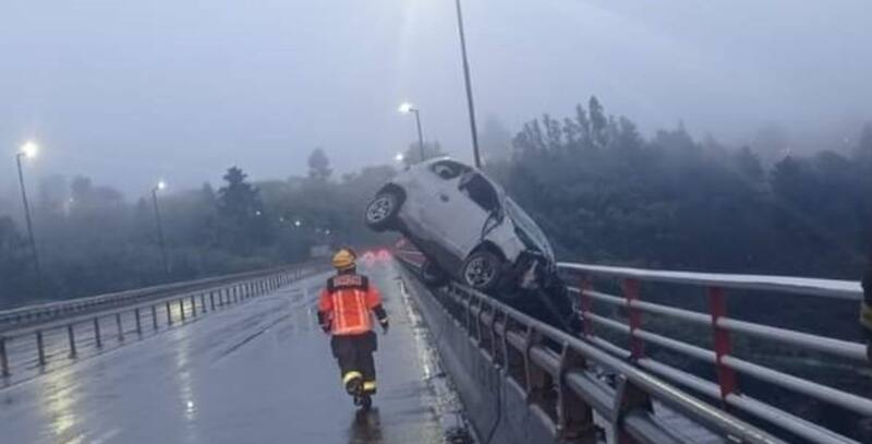 Por Consuelo CalderónSe salvó por poco: impactante accidente dejó a un vehículo a centímetros de caer al vacío en el puente Malleco