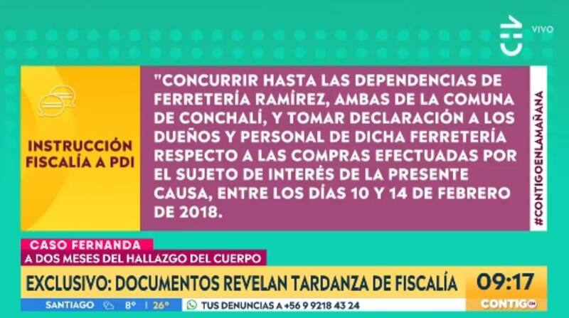 Una petición vía oficio realizada por la fiscal Patricia Varas a la Brigada de Ubicación de Personas de la PDI, confirmaría que la fiscalía tardó casi un año en entrevistar a los trabajadores de la ferretería donde Felipe Rojas compró diversos materiales, a días de la desaparición de Fernanda Maciel.