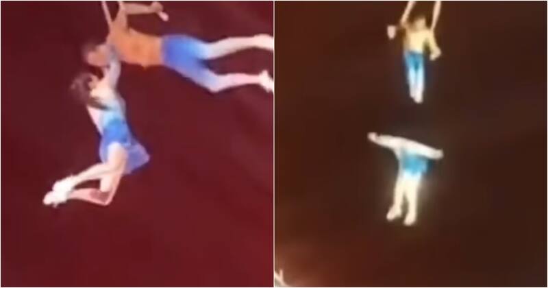 En medio de la rutina, la acróbata saltó desde su trapecio en el aire con la intención de sujetarse de las piernas de su pareja. Sin embargo, la mujer cayó al vacío frente a los espectadores.