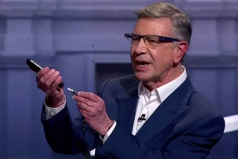 Fue este último quien llamó la atención de los televidentes luego de que, en reiteradas veces intentara conectar a su teléfono un dispositivo (similar a un pendrive), lo cual resultaba imposible porque la ranura para cargar el teléfono no era compatible con un enchufe tipo USB.