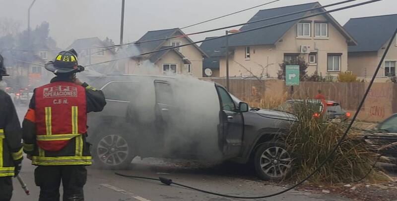 Solo se produjo humo al interior del móvil, constató Radio ADN, así que la madre y los dos niños que se encontraban dentro fueron rescatados con algunas heridas de leve consideración.