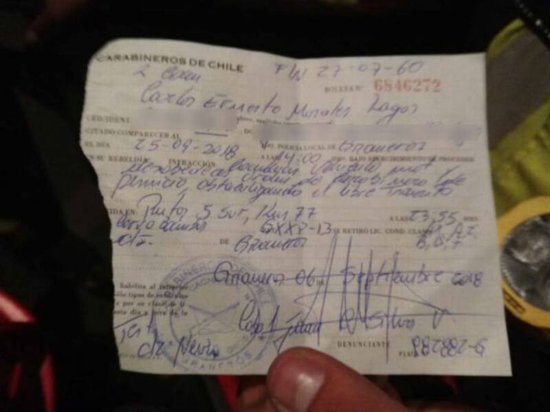 En tanto, la multa dice que el chófer "desobedece orden de carabinero de servicio por obstaculizar el libre tránsito".