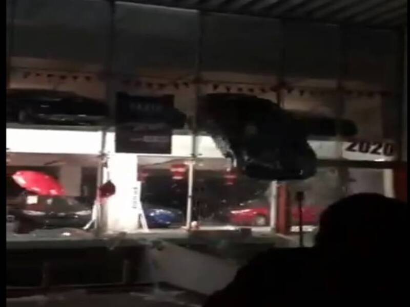 Según informó Meganoticias, El recinto fue atacado por encapuchados y lo más impactante fue que lanzaron un vehículo desde el segundo piso. Quedando registrado en una serie de video que se viralizaron por twitter.
