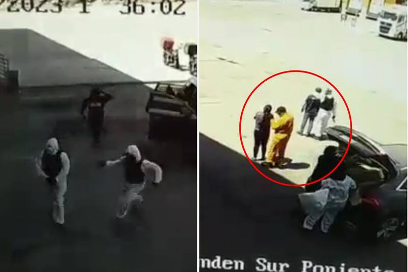 En el video aparecen una mujer y un hombre tomados como rehenes por dos asaltantes, mientras el resto concretaba el robo.