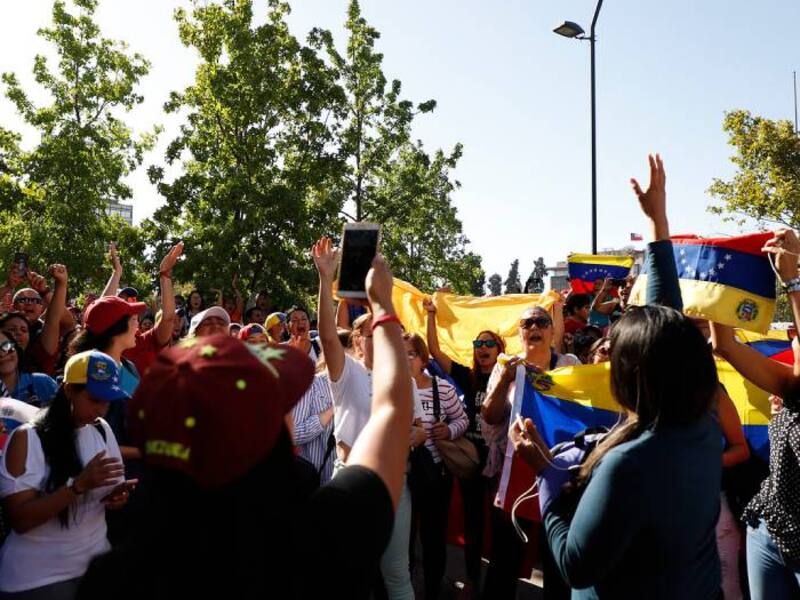 Durante la tarde de este miércoles, parte de la comunidad venezolante con residencia en Santiago se juntó en la Plaza Italia para manifestar su apoyo a Juan Guiadó, quien en esta jornada se autoproclamó como primer mandatario de esa nación.