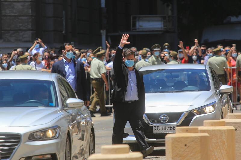 El arribo de Boric, en compañía de Izkia Siches y Giorgio Jackson, estuvo marcado por el masivo apoyo ciudadano. En las inmediaciones de La Moneda, decenas de personas le gritaron a la distancia, pidiéndole un saludo o una foto.