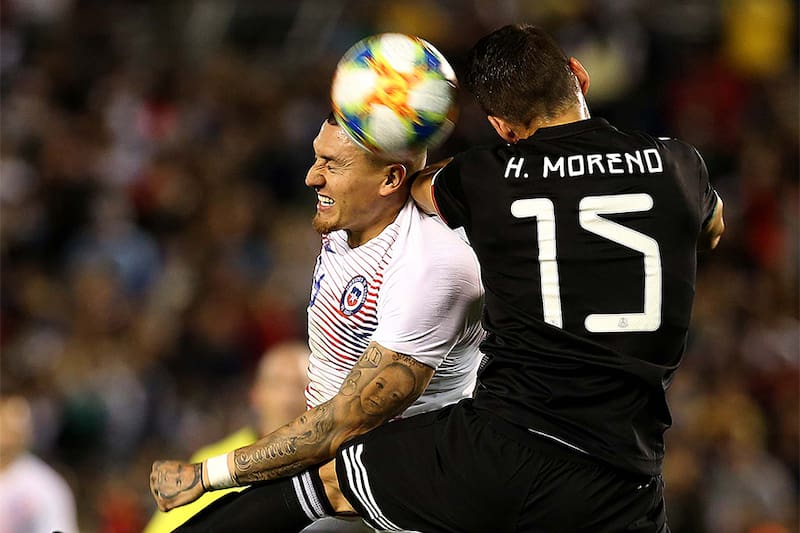 Y parecía resultarle la apuesta, porque los Bicampeones de América crearon las mejores ocasiones de gol: Arturo Vidal exigió al portero Guillermo Ochoa con un cabezazo (14') y a los 23', Castillo intentó pasó un globito que sacó en la línea Héctor Moreno.