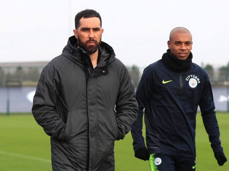 El arquero que fue operado tras su lesión en el tendón de Aquiles izquierdo, fue recibido calurosamente por sus compañeros brasileños Danilo y Fernandinho, quienes le dieron la bienvenida a los entrenamientos.