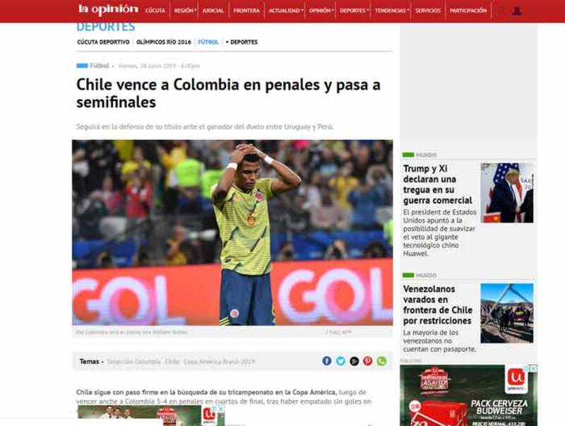 "Chile mostró la realidad tricolor", tituló su nota el diario El Colombiano, mientras que El Tiempo indicó que "Acabó el sueño: Colombia despertó afuera de la copa".