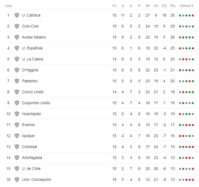 De esta forma, Colo Colo llegó a 29 puntos y se ubica en la segunda posición de la tabla, a seis puntos del líder, Universidad Católica.