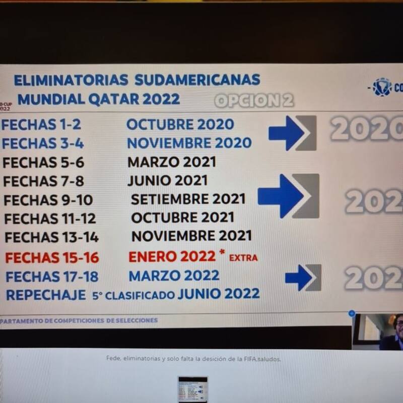 En tanto las eliminatorias a Qatar 2022 también sufrieron cambios. Siempre se ha dicho que sí o sí se disputarán en 2020. Sin embargo, ahora se cambió de mes. De septiembre pasó a octubre. Por lo que en enero de 2022 se disputaría la penúltima fecha y el proceso terminaría en marzo de dicho mes.