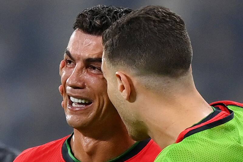 Terminado el primer tiempo del alargue, el DT de Portugal, Roberto Martínez, le dio una charla a sus jugadores, pero la cámara de la transmisión captó a Ronaldo estaba en otro lugar, llorando desconsoladamente, lo que rápidamente dio la vuelta al mundo.