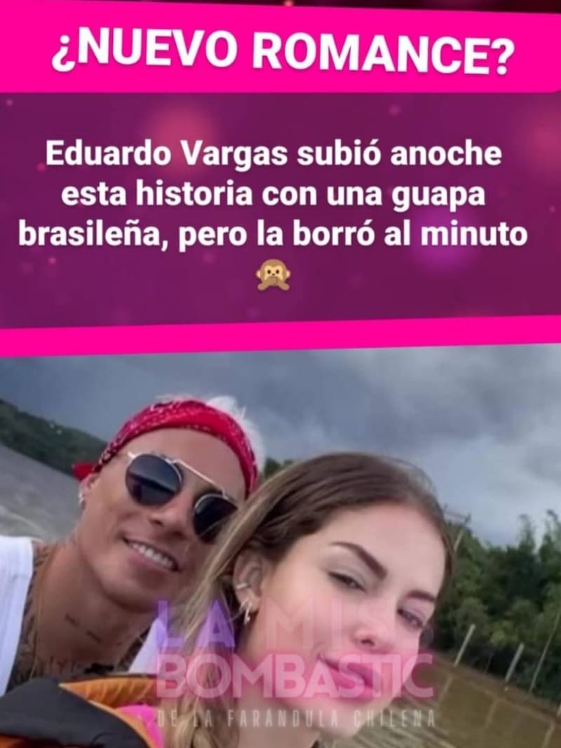 “Eduardo Vargas subió anoche esta historia con una guapa brasileña, pero la borró al minuto, ¿nuevo romance?”, se preguntó la periodista de espectáculos.