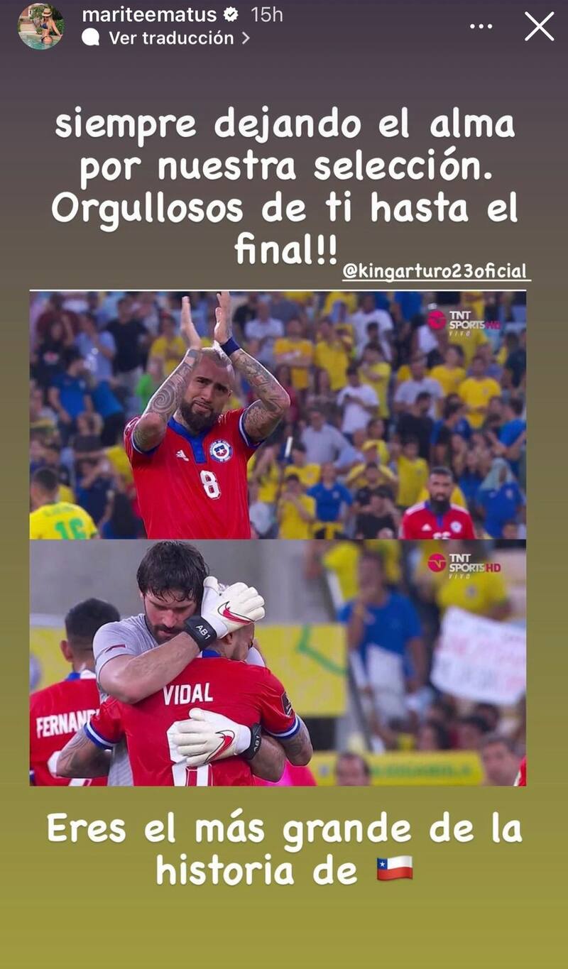Una de ellas, por ejemplo, fue María Teresa Matus. La ex esposa de Arturo Vidal alzó la voz y le dedicó un emotivo mensaje a través de redes sociales.