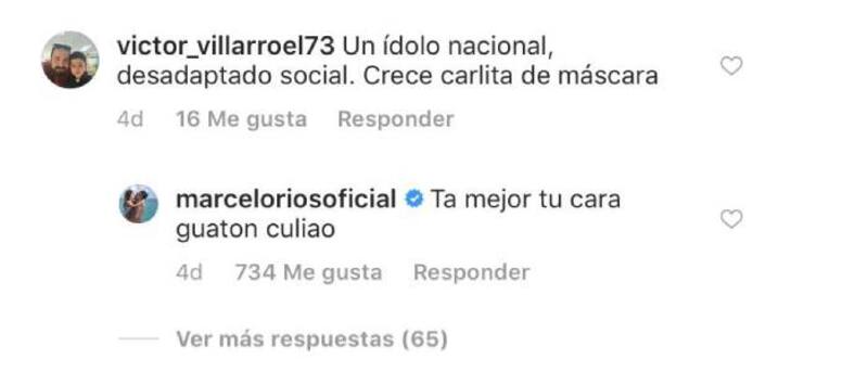 "Fantasma ta feo el auto, tienes más guata que burro parado" y "un ídolo nacional, desadaptado social. Crece carita de máscara", fueron algunos de los mensajes que le llegaron en la plataforma virtual.