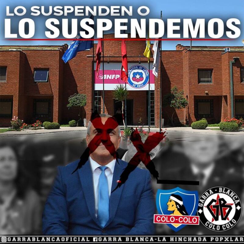 "Lo suspenden o lo suspendemos", con este mensaje la Garra Blanca apuntó a la ANFP y a su presidente Pablo Milad para que no se realicé el duelo entre Colo Colo y Santiago Wanderers.