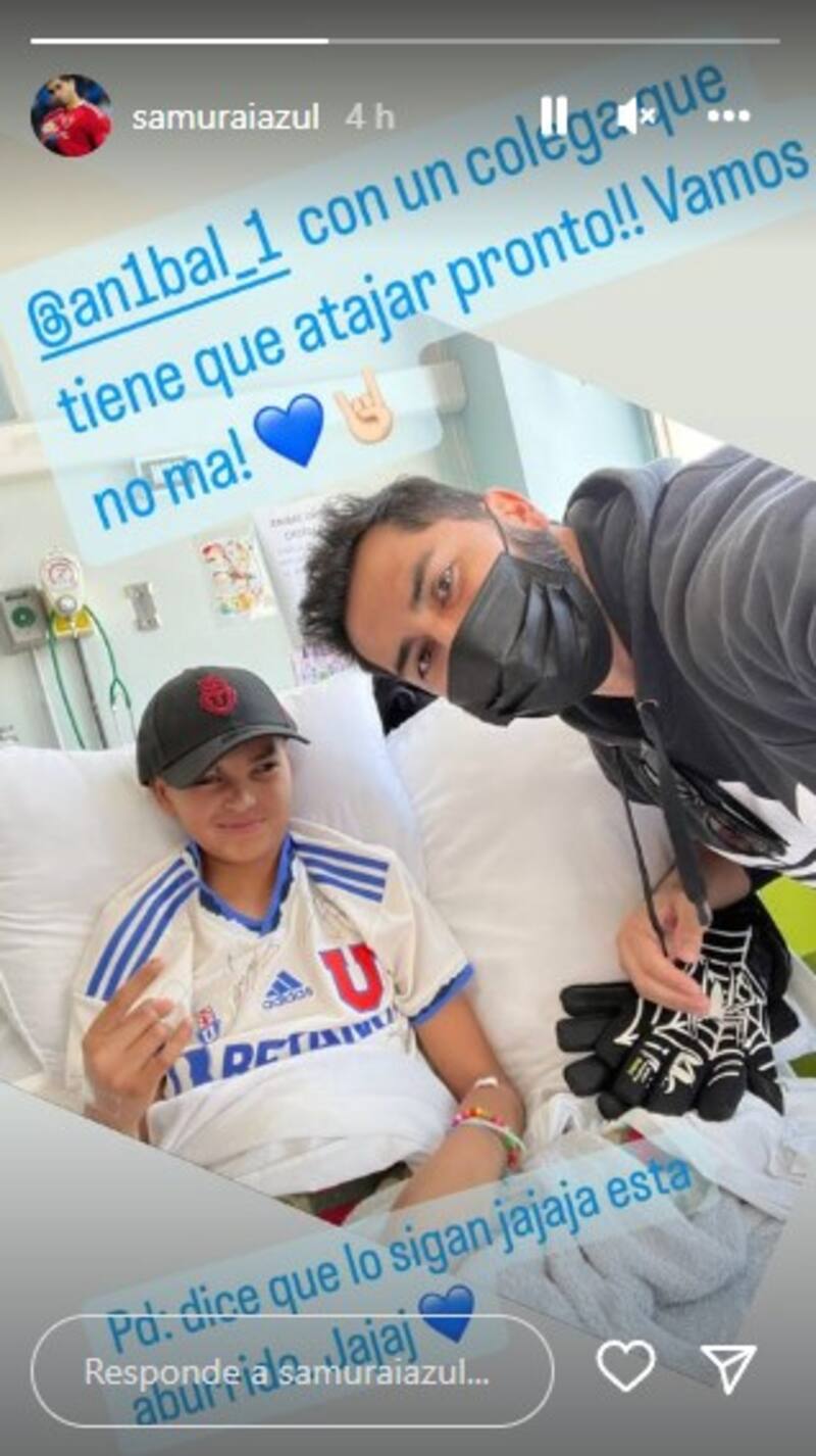 “@An1bal_1 con un colega que tiene que atajar pronto!! Vamos no ma! PD: dice que lo sigan jajaja está aburrido jaja”, añadió Herrera en sus historias de Instagram posando junto al joven y emocionando por su mejoría.