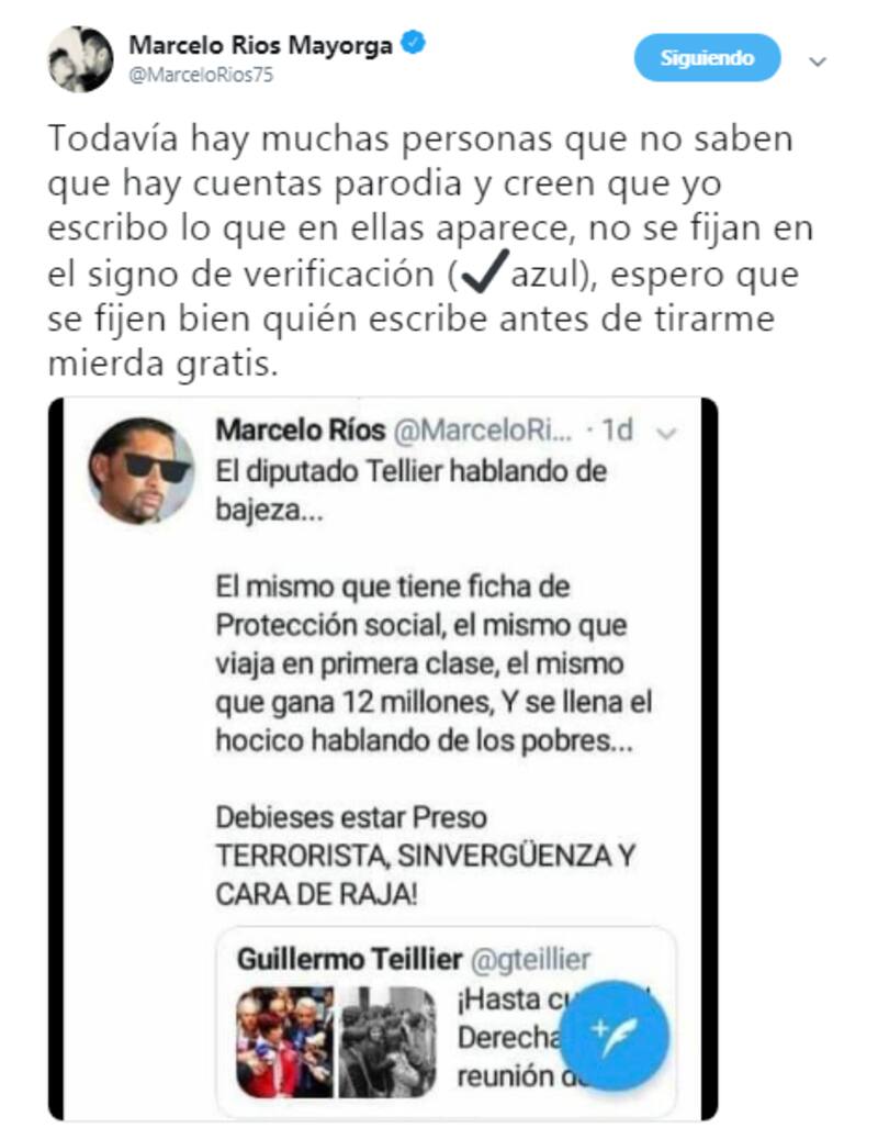 "Todavía hay muchas personas que no saben que hay cuentas parodia y creen que yo escribo lo que en ellas aparece, no se fijan en el signo de verificación, espero que se fijen bien quién escribe antes de tirarme mierda gratis", recalcó para que de una vez por todas se aburran de la misma talla fome.