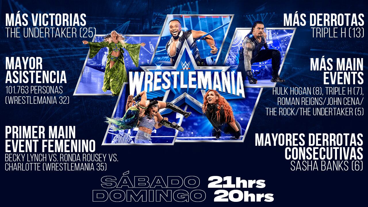 Y este año, al igual que en 2021, el certamen se dividirá en dos partes. Todo comenzará este sábado 2 de abril a las 21:00 (antes habrá una previa de dos horas), con luchas como Bianca Belair vs Becky Lynch; Charlotte Flair ante Ronda Rousey y Seth Rollins luchando ante un oponente sorpresa. Además, la jornada estará marcada por el regreso de Stone Cold Steve Austin, quien será parte de un segmento junto a Kevin Owens.
