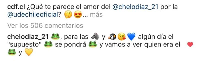 Comentarios que aburrieron al volante y que paró en seco. Con emoticones de por medio, Díaz respondió asegurando que "algún día el supuesto 'sapo' se pondrá 'sapo' y vamos a ver quién era el 'sapo' y 'amarillo'".