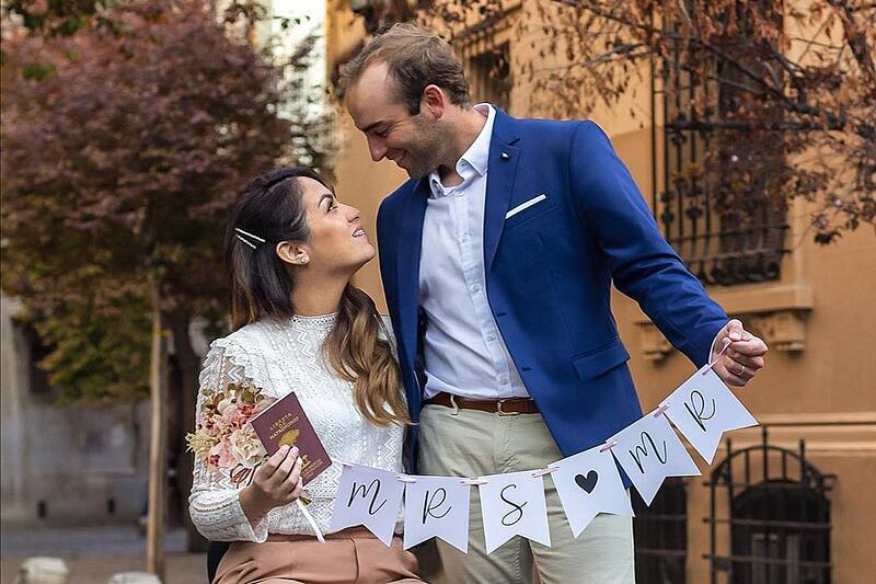 "La verdad estamos muy felices. Quisimos hacer una ceremonia muy privada, con solo nuestros testigos. Sin fiesta. No tiene sentido gastar tanta plata cuando lo puedes invertir en un viaje mejor", asegura. La pareja decidió hacerlo de esta manera, ya que concentrarán energías en su luna de miel en Europa del próximo año.