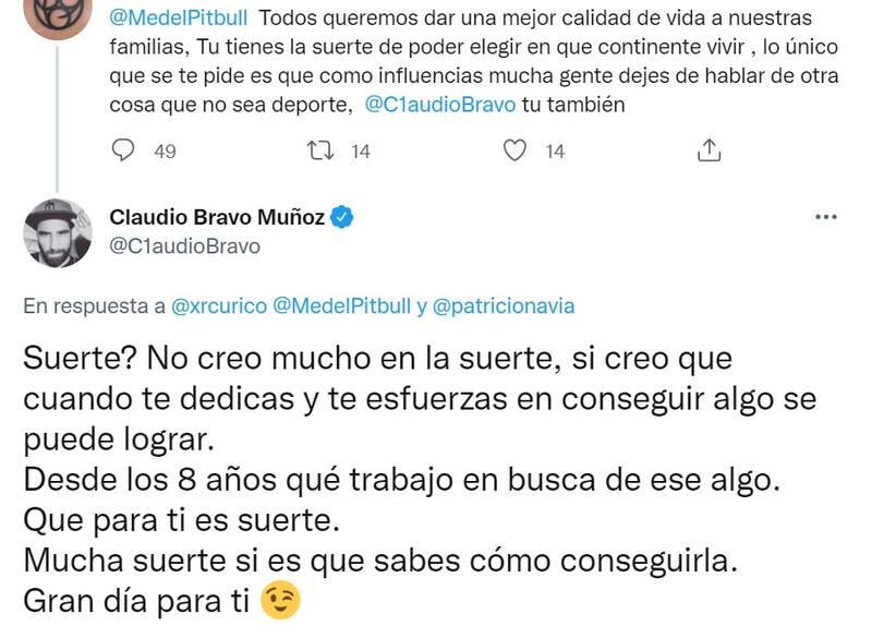 “Todo queremos dar una mejor calidad de vida a nuestras familiar. Tú tienes la suerte de poder elegir en qué continente vivir”, le planteó un tuitero al jugador formado en la UC. Bravo intervino...