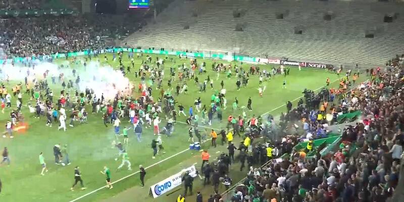 ¿No era que no pasaba en Europa?: hinchas del Saint-Étienne invaden la cancha y atacan a los jugadores rivales tras descenso