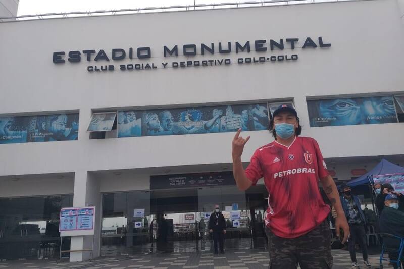Hasta este lugar llegó un hincha de Universidad de Chile, Miguel, quien vestía la camiseta de su club para hacer patria en una cancha hostil, donde los azules no han podido ganarle a Colo Colo en veinte años.