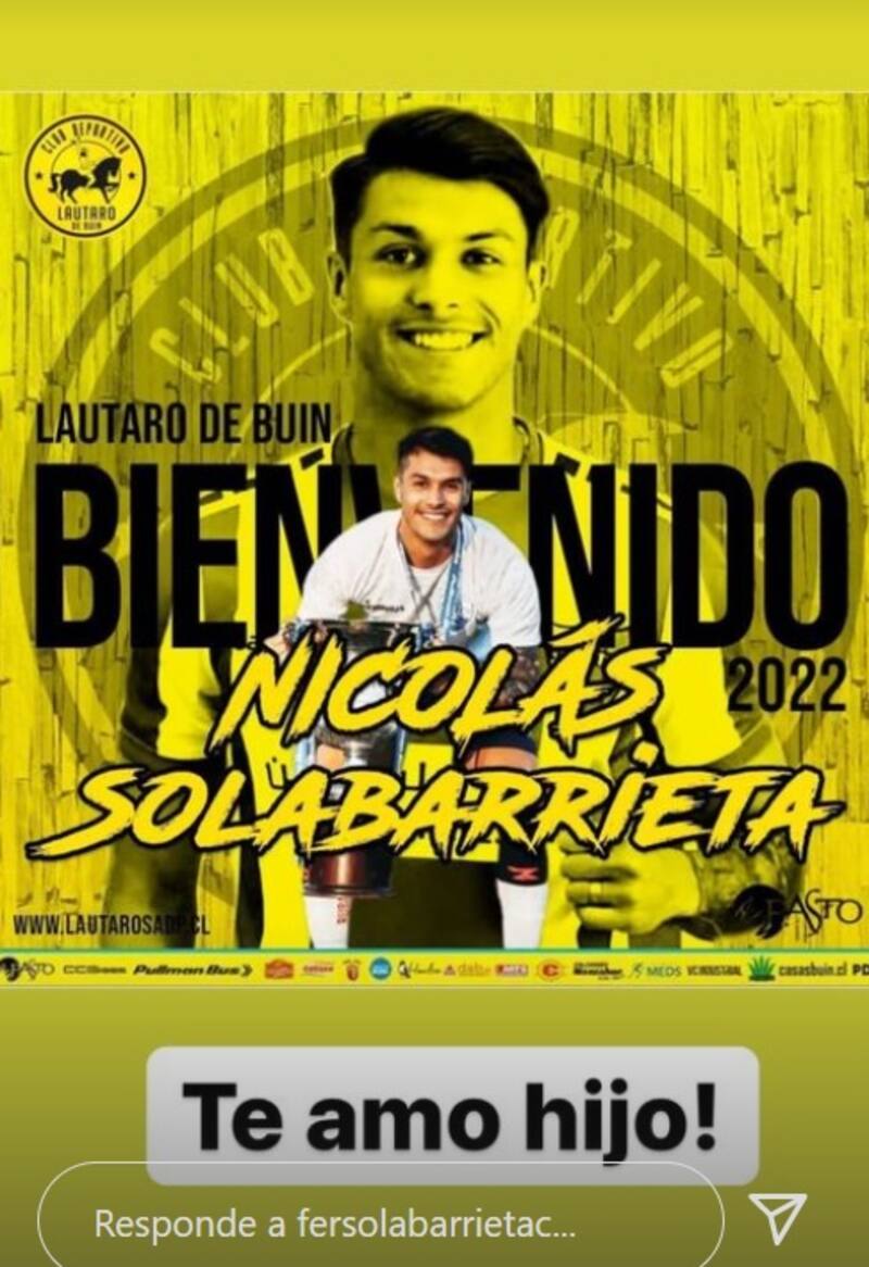 Una especial publicación compartió Fernando Solabarrieta tras el confirmarse el fichaje de su hijo Nicolás en un club del fútbol chileno.
