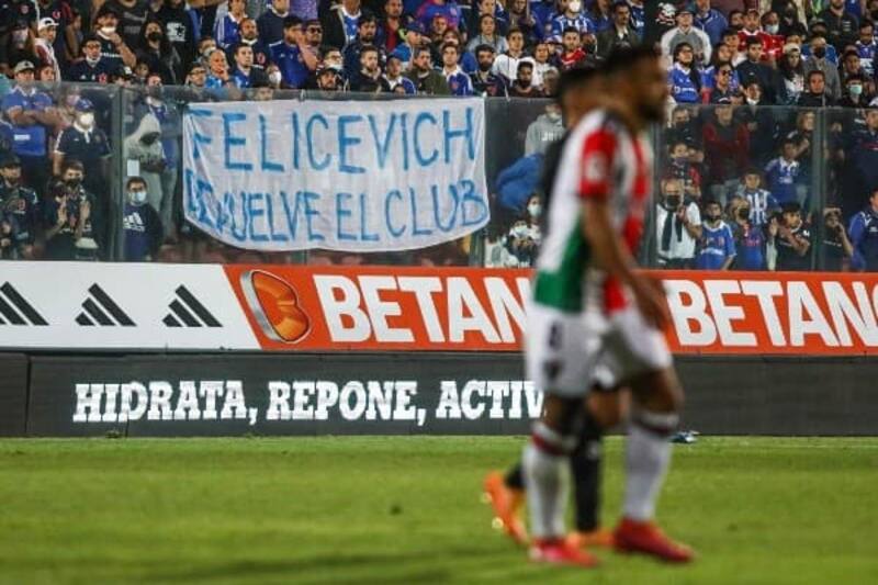 El sábado pasado, en pleno encuentro de la Universidad de Chile frente a Palestino en el Estadio Santa Laura, un grupo de hinchas azules se manifestó en contra del representante Fernando Felicevich, a quien acusaron de adueñarse de la institución. “Devuelve el club”, le escribieron en un lienzo, que apareció más tarde en las cámaras de TNT Sports, y que provocó, a su vez, la respuesta del agente.