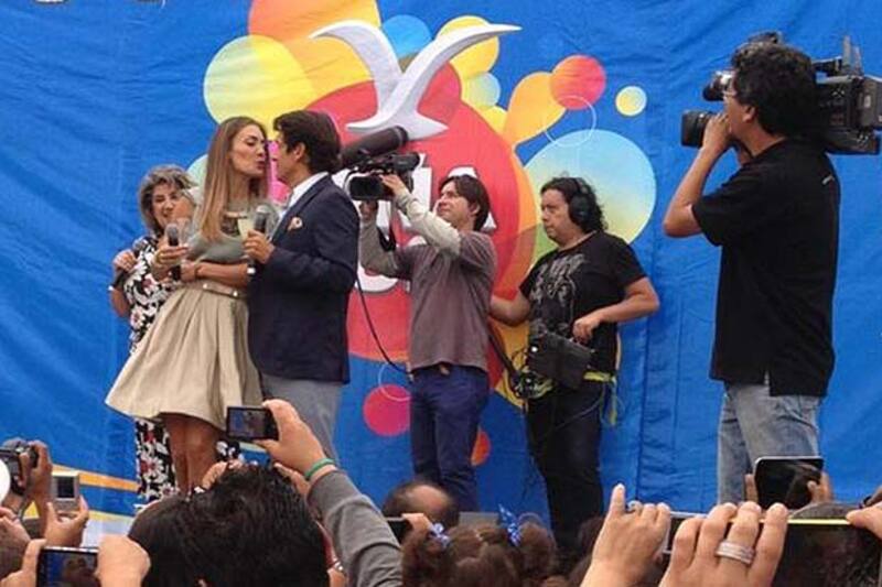 Después se subió al escenario preparado a propósito de la Gala del Pueblo, en el palacio Rioja y haciendo gala de su buen humor se adelantó con el beso festivalero esperado para este domingo 23 de febrero, día en que parte la próxima versión del Festival de Viña.