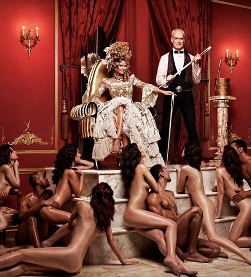 Cabe señalar, que la publicidad se podía ver en distintos puntos de la ciudad y en ella aparece la modelo internacional sentada en un trono, vestida como María Antonieta, y a sus pies una serie de modelos (hombre y mujeres) totalmente desnudos.