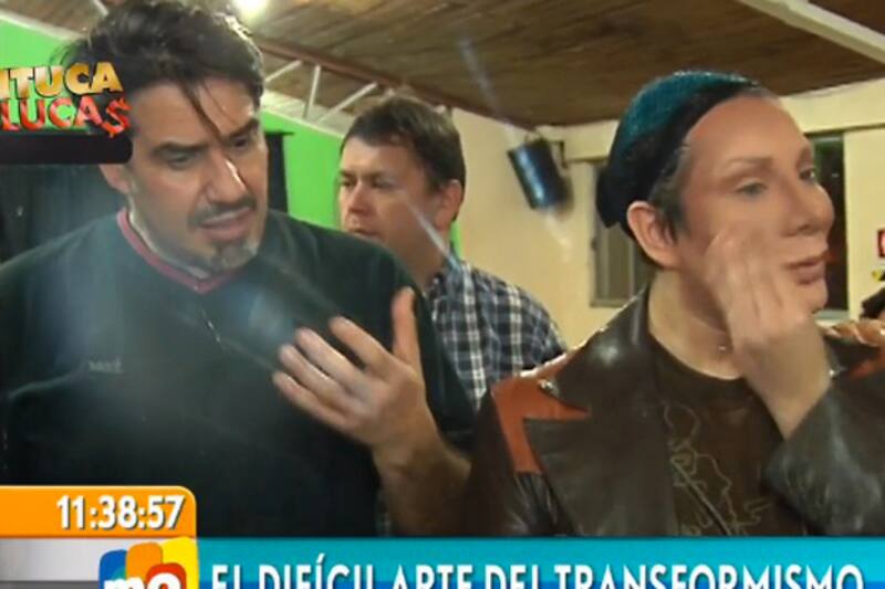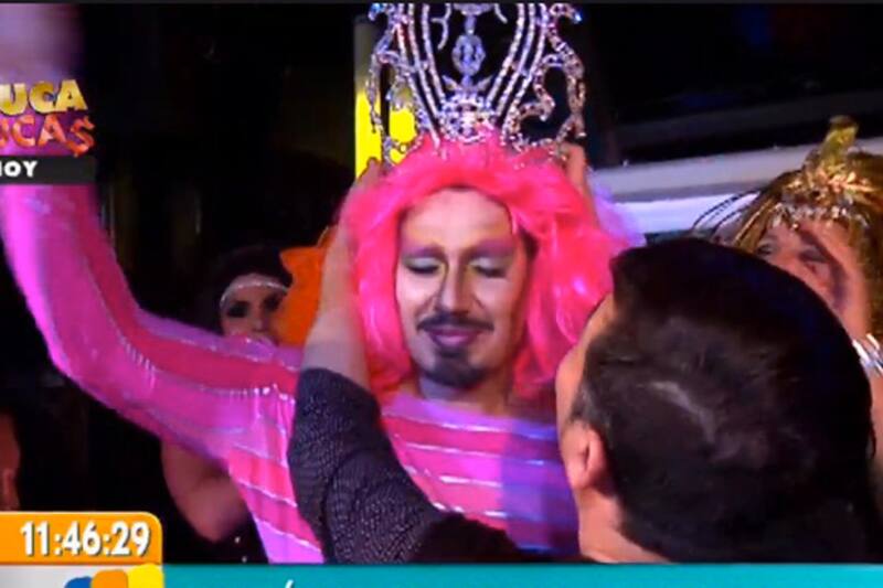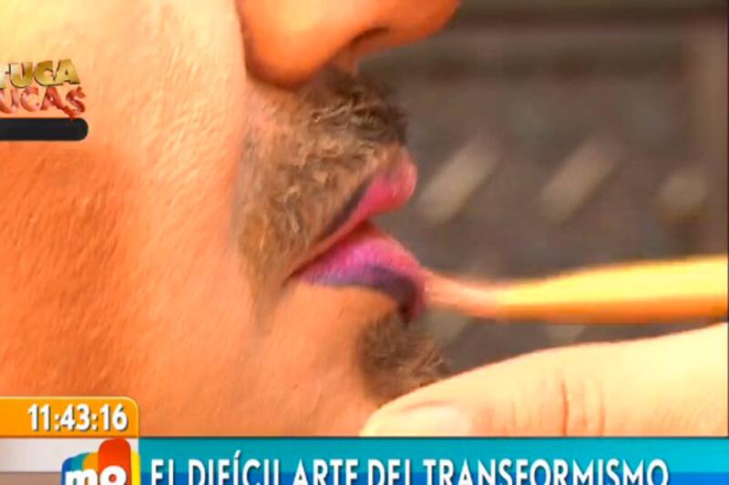 El hombrón dejó que lo maquillaran, se puso taco alto y una peluca rosada que dejó en evidencia que ni con 25 piscolas sin hielo pasaba como mujer.