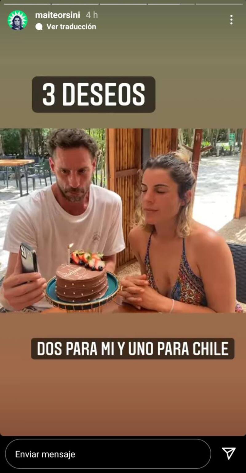 “3 deseos. Dos para mi y uno para Chile”, escribió Maite Orsini en el registro donde aparece junto a su pareja, recibiendo mensajes de felicitaciones por su día especial.