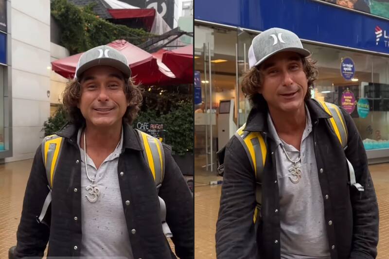 En las imágenes se le ve saliendo de una oficina de Latam, mientras celebra la lluvia en la capital. “Nos vemos, chao. Lloviendo en Santiago, lloviendo en la capital, lindos los edificios, lindas las nubes, estamos en Latam”, se le escucha decir.